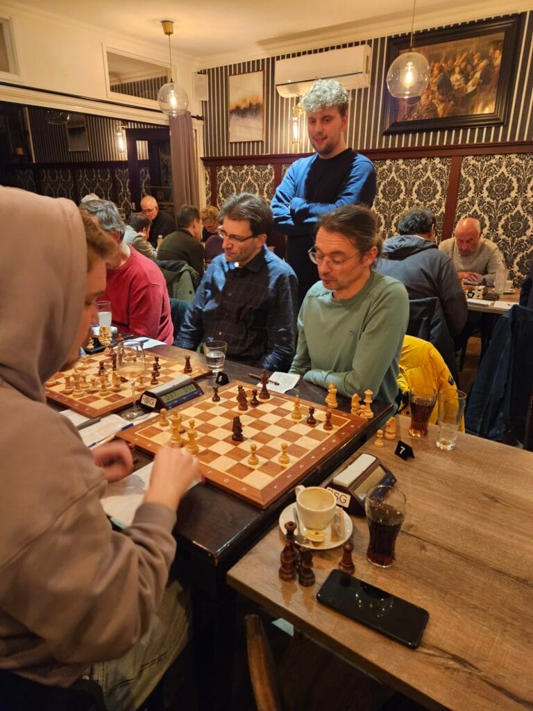 Ook hier hadden we Londen op het bord. De gehele partij bleef het gelijk. Beide heren hebben geen steekjes laten vallen. Dus dan is de uitslag eigenlijk al vanaf het begin bekend. Het werd een remise. Zeker voor Eric een mooie uitslag.